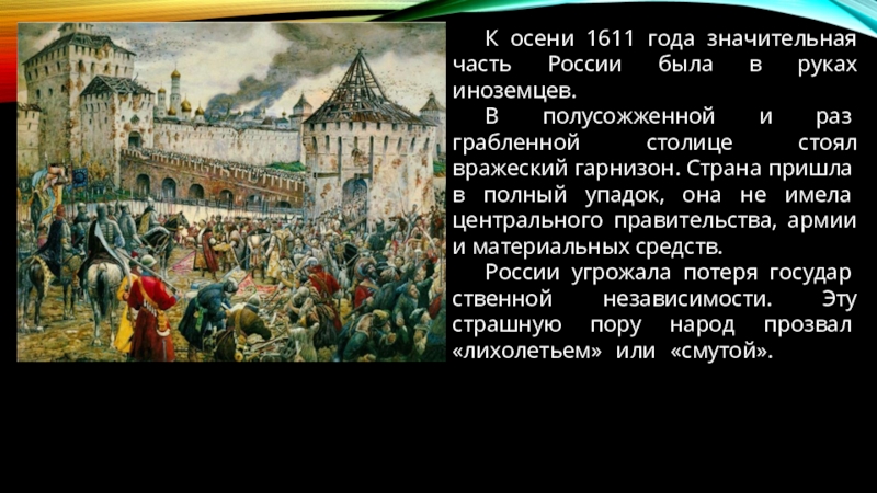 Слайд 8 К осени 1611 года значительная часть России была в руках иноземцев.