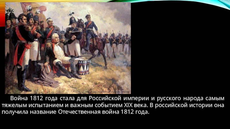 Слайд 15 Война 1812 года стала для Российской империи и русского народа самым