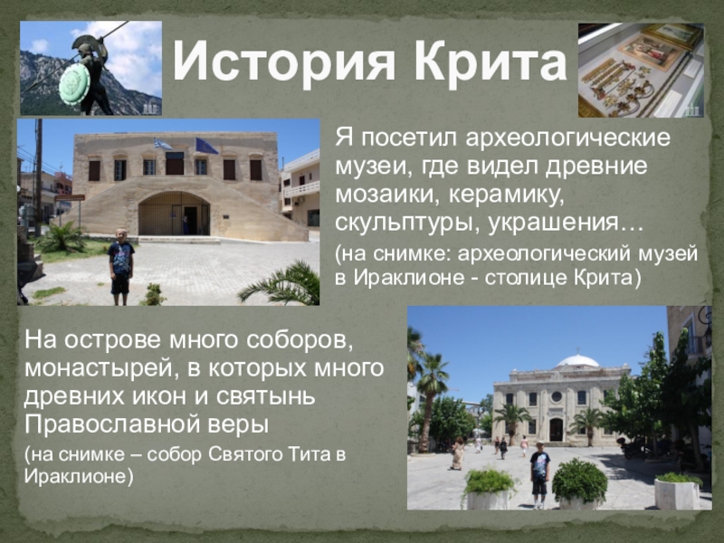 Я посетил археологические музеи, где видел древние мозаики, керамику, скульптуры, украшения…