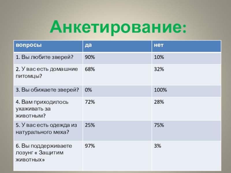 План нашего проекта:Рассказать о животных под нашей ответственностью.3. Выставка наших рисунков.4. Результаты опроса в таблице.5. Призыв к