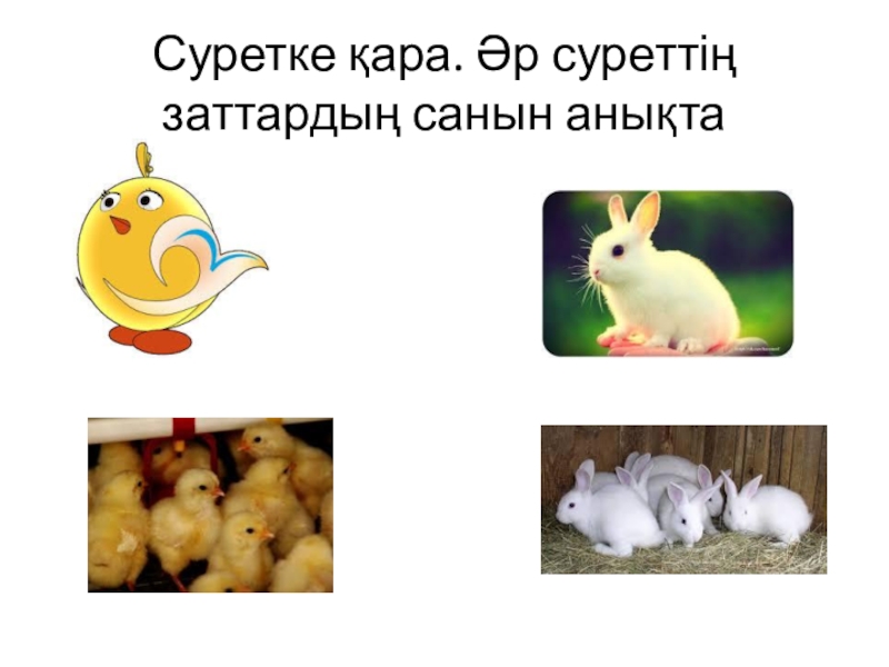 Слайд 2Суретке қара. Әр суреттің заттардың санын анықта