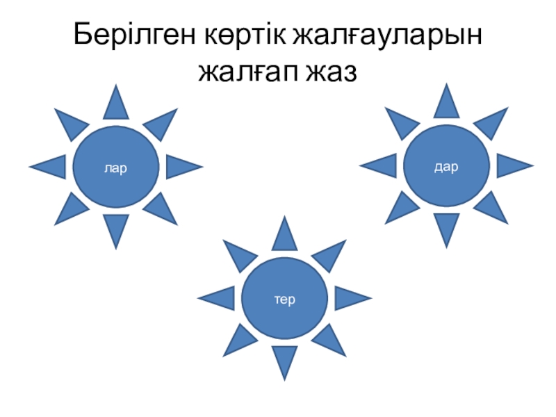 Слайд 8Берілген көртік жалғауларын жалғап жаз