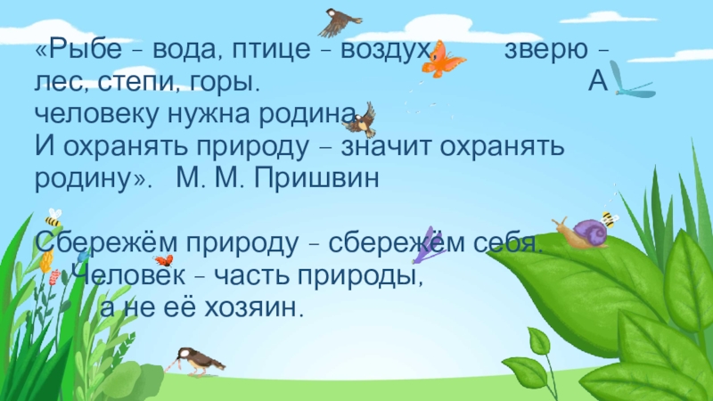 И охранять природу – значит охранять родину». М. М. Пришвин