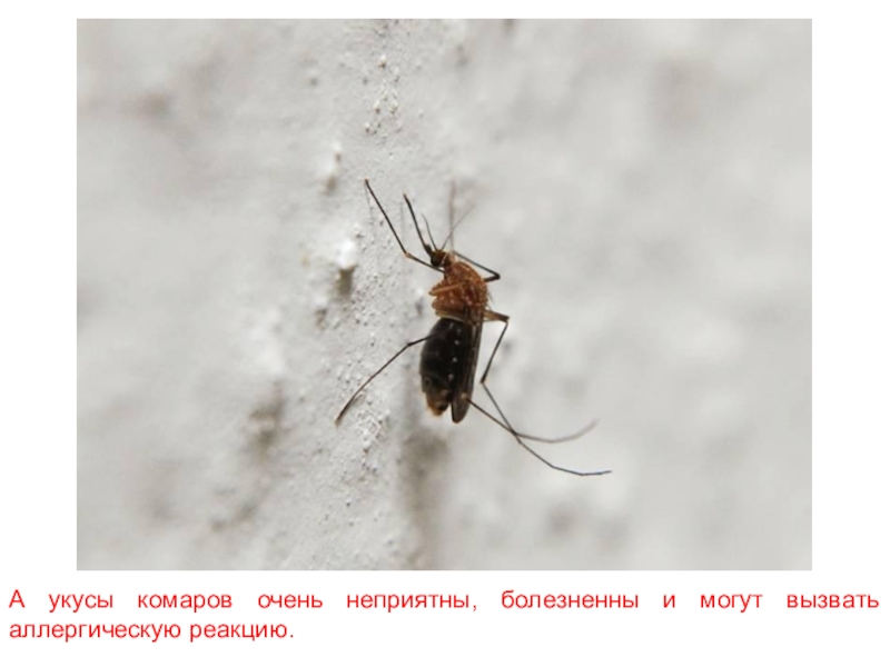 Слайд 34А укусы комаров очень неприятны, болезненны и могут вызвать аллергическую реакцию.