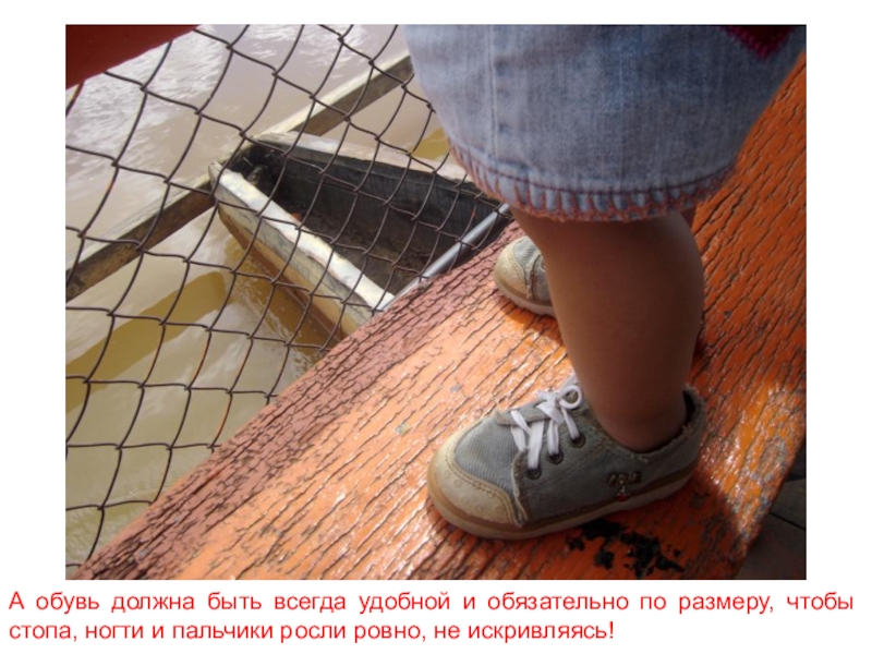 Слайд 41А обувь должна быть всегда удобной и обязательно по размеру, чтобы