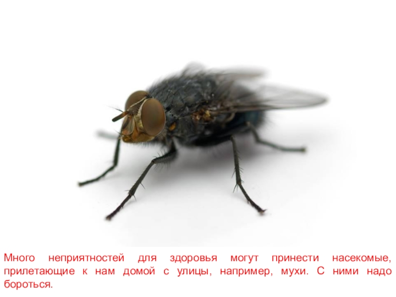 Слайд 33Много неприятностей для здоровья могут принести насекомые, прилетающие к нам домой