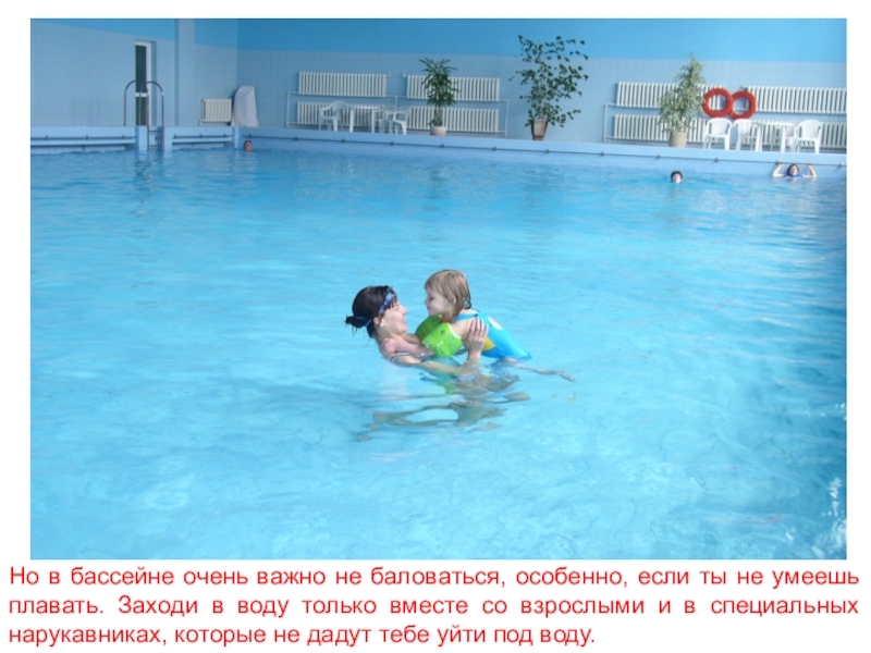 Слайд 46Но в бассейне очень важно не баловаться, особенно, если ты не