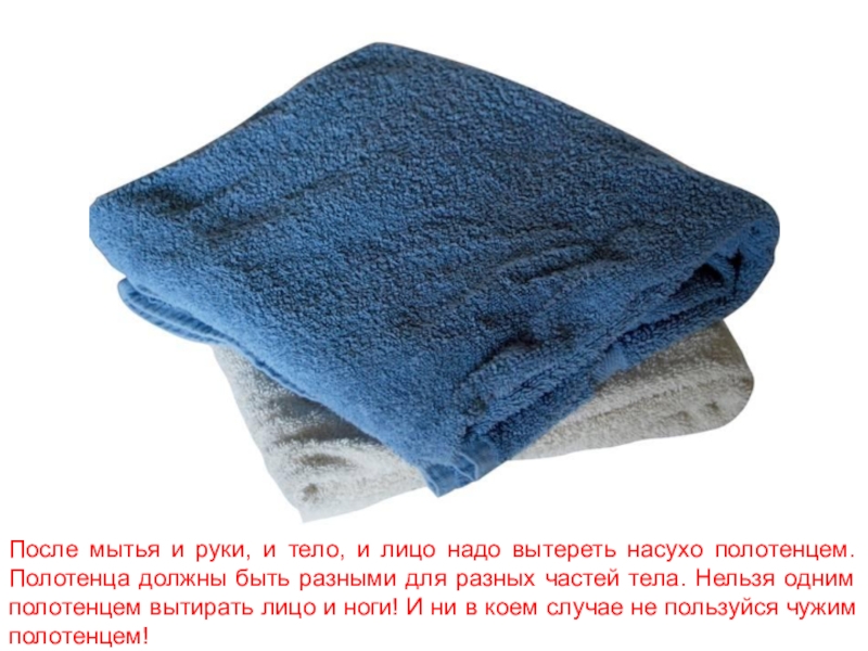 Слайд 18После мытья и руки, и тело, и лицо надо вытереть насухо