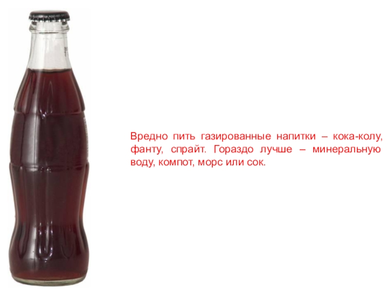 Слайд 30Вредно пить газированные напитки – кока-колу, фанту, спрайт. Гораздо лучше –