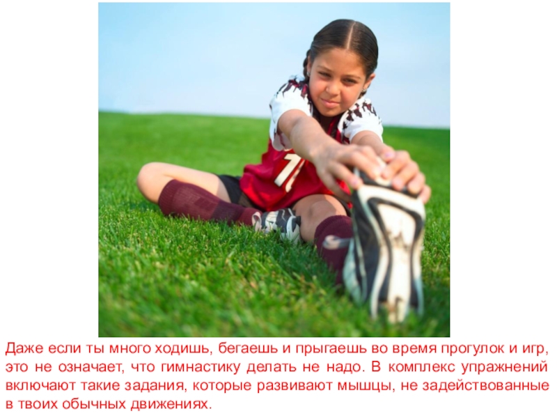 Слайд 10Даже если ты много ходишь, бегаешь и прыгаешь во время прогулок