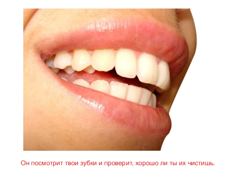Слайд 48Он посмотрит твои зубки и проверит, хорошо ли ты их чистишь.