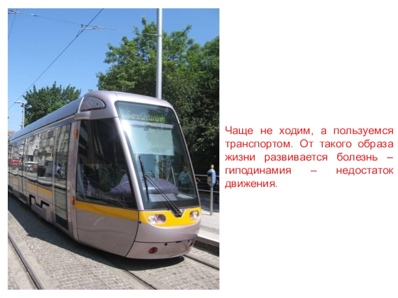 Слайд 9Чаще не ходим, а пользуемся транспортом. От такого образа жизни развивается
