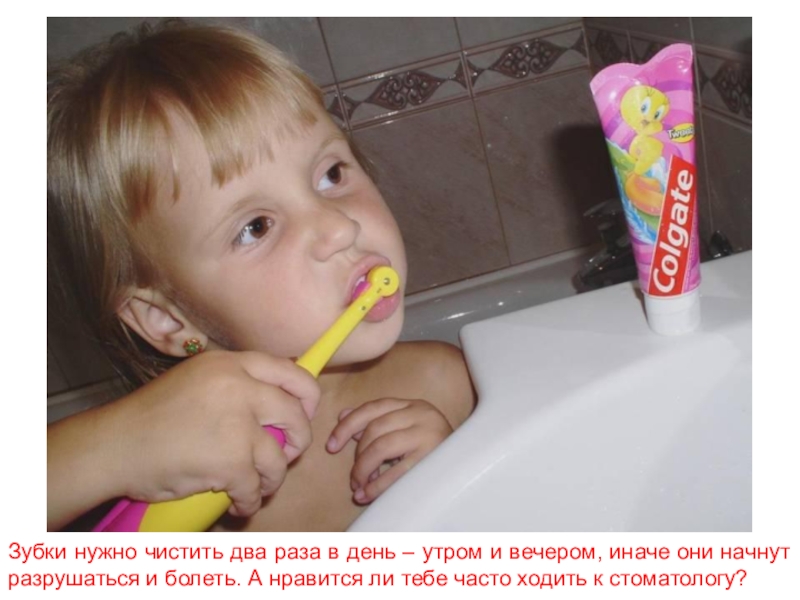 Слайд 13Зубки нужно чистить два раза в день – утром и вечером,