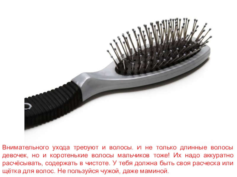 но и коротенькие волосы мальчиков тоже! Их надо аккуратно расчёсывать, содержать в чистоте. У тебя должна быть своя расческа или щётка для волос. Не пользуйся чужой, даже маминой.