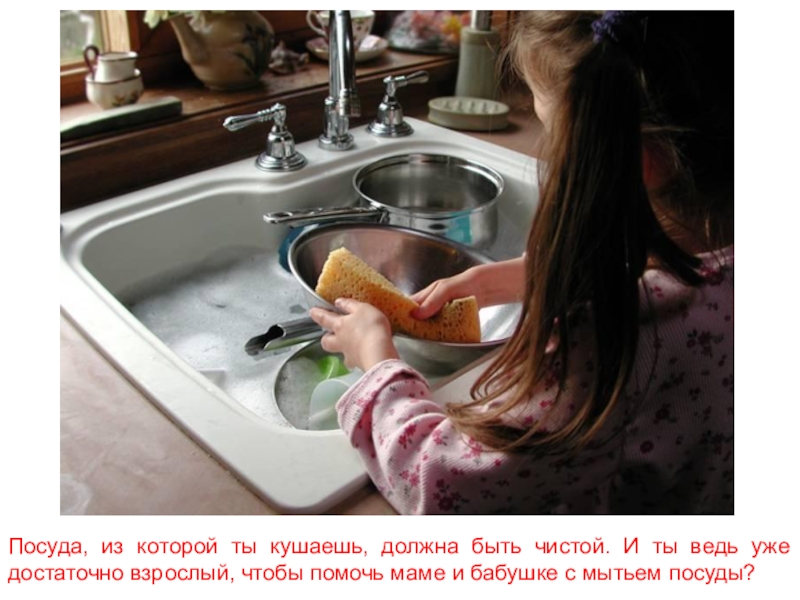 Слайд 31Посуда, из которой ты кушаешь, должна быть чистой. И ты ведь