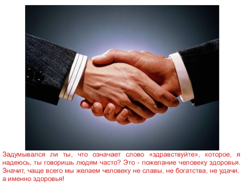 Слайд 2Задумывался ли ты, что означает слово «здравствуйте», которое, я надеюсь, ты