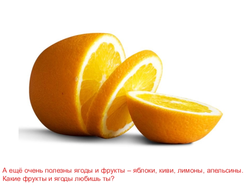 Слайд 24А ещё очень полезны ягоды и фрукты – яблоки, киви, лимоны,