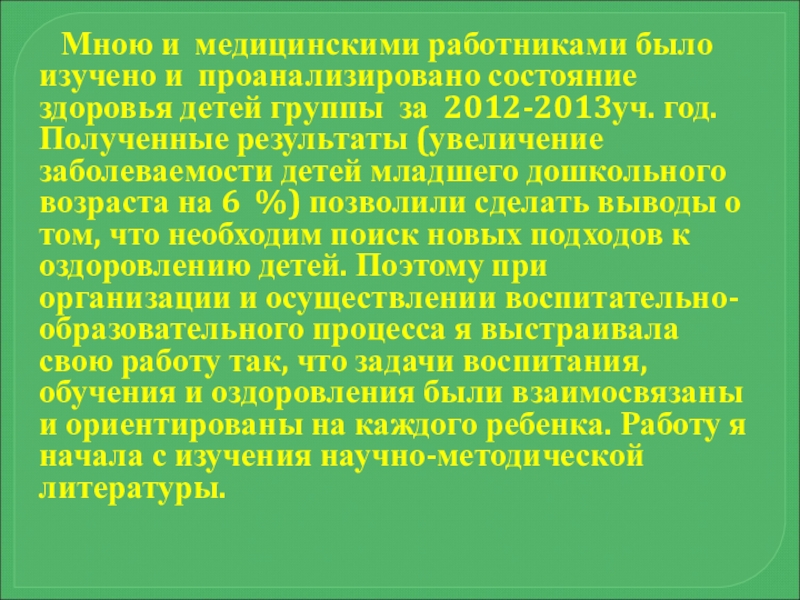 1.Создание развивающей здоровьесберегающей среды