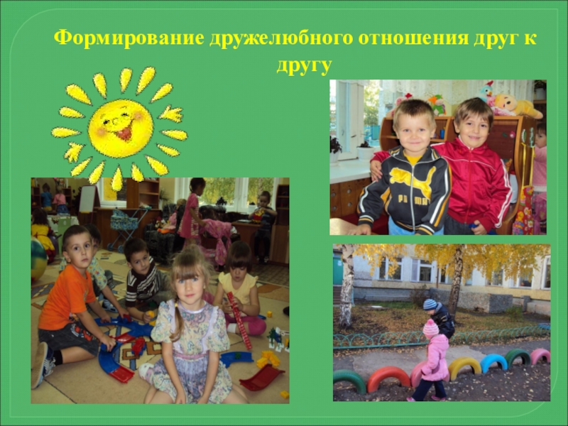 создание игровых ситуаций по формированию дружелюбного отношения друг к другу;
