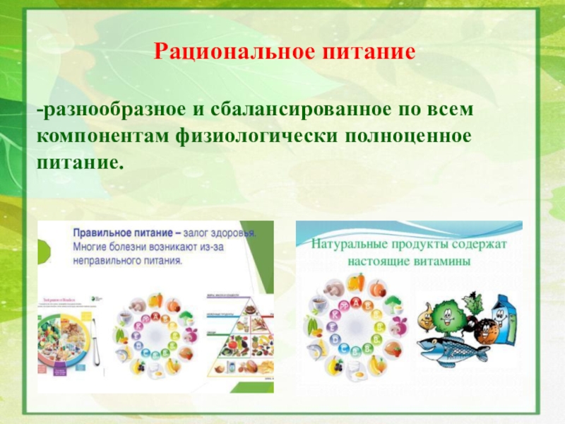 Рациональное питание  -разнообразное и сбалансированное по всем компонентам физиологически полноценное питание.