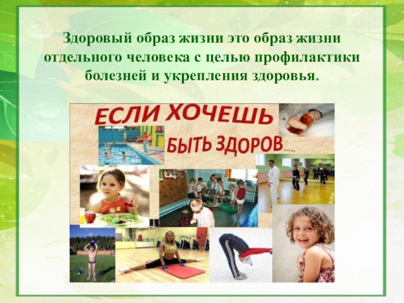 Здоровый образ жизни это образ жизни отдельного человека с целью профилактики болезней и укрепления здоровья.