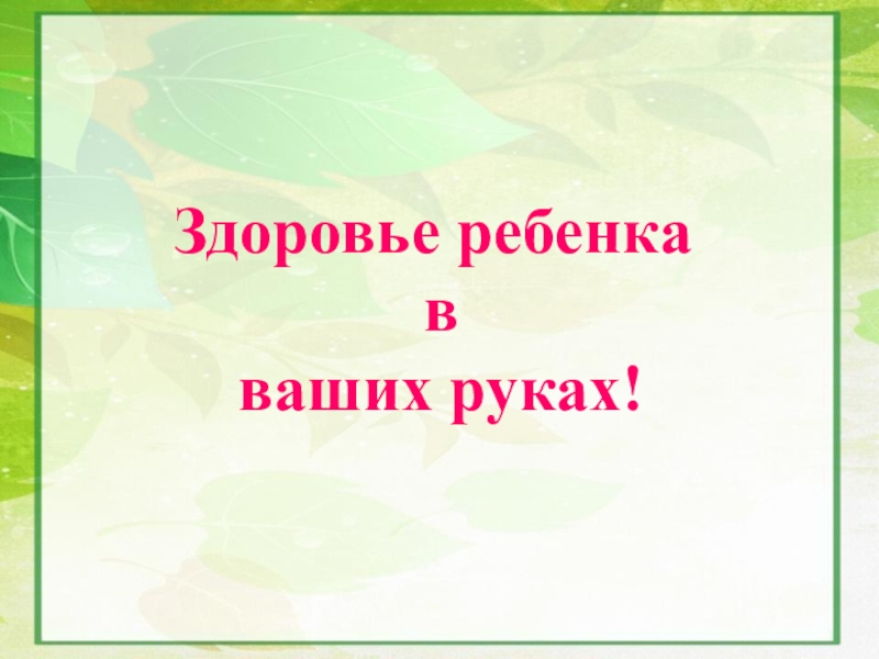 Формировать у родителей ответственность за здоровье своего ребёнка.