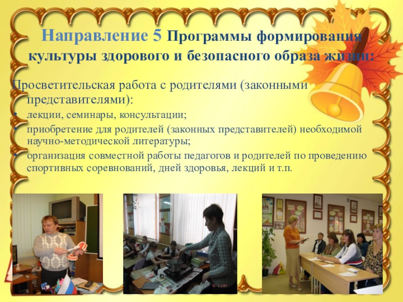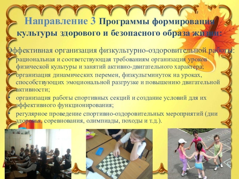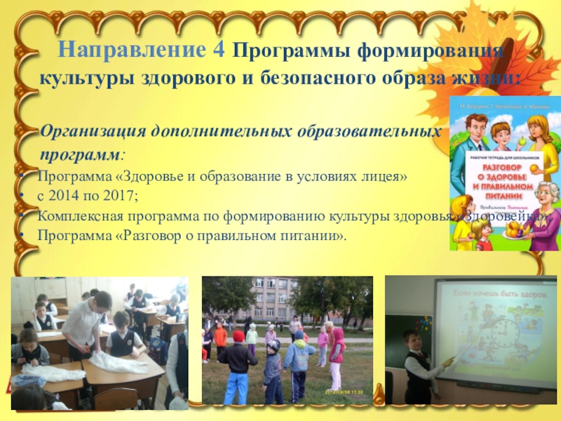 Направление 4 Программы формирования культуры здорового и безопасного образа жизни: