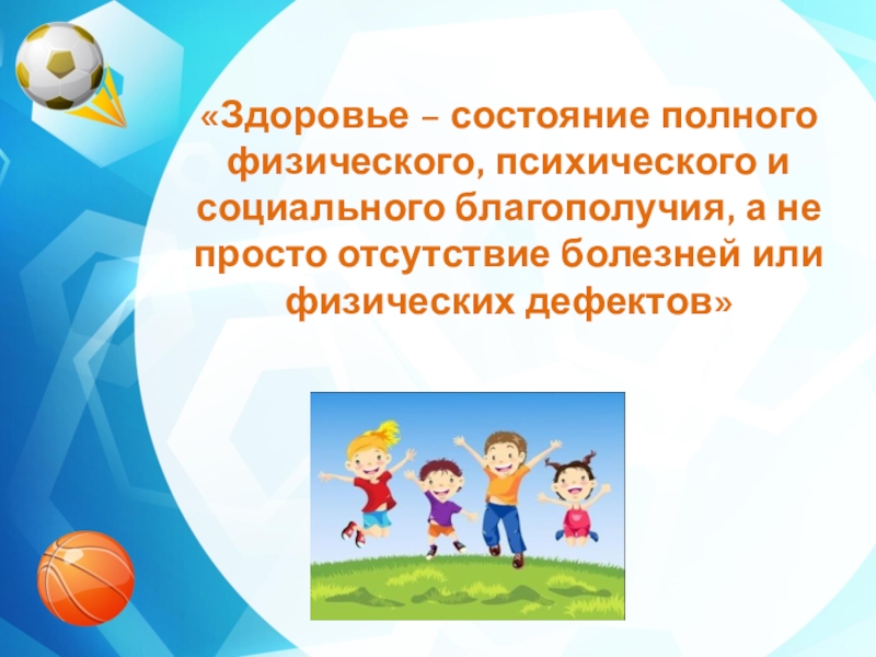 «Здоровье – состояние полного физического, психического и социального благополучия, а