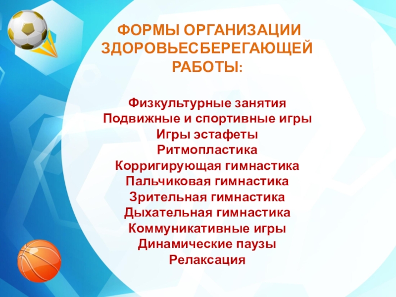 ФОРМЫ ОРГАНИЗАЦИИ ЗДОРОВЬЕСБЕРЕГАЮЩЕЙ