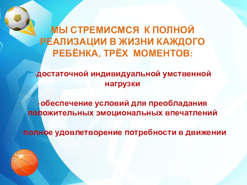 МЫ СТРЕМИСМСЯ К ПОЛНОЙ РЕАЛИЗАЦИИ В ЖИЗНИ КАЖДОГО РЕБЁНКА, ТРЁХ МОМЕНТОВ: