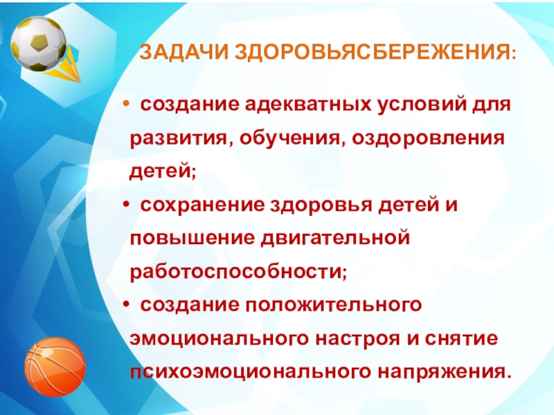 ЗАДАЧИ ЗДОРОВЬЯСБЕРЕЖЕНИЯ: