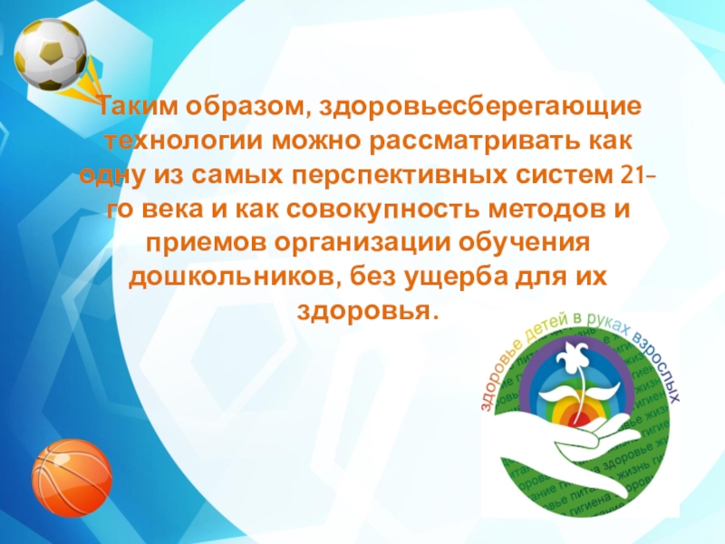 Слайд 20Таким образом, здоровьесберегающие технологии можно рассматривать как одну из самых перспективных