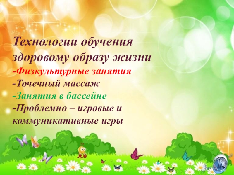 Технологии обучения здоровому образу жизни-Физкультурные занятия-Точечный массаж-Занятия в бассейне-Проблемно – игровые и коммуникативные игры