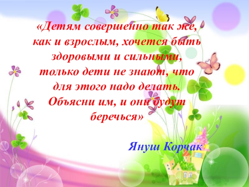 Слайд 2«Детям совершенно так же, как и взрослым, хочется быть здоровыми и