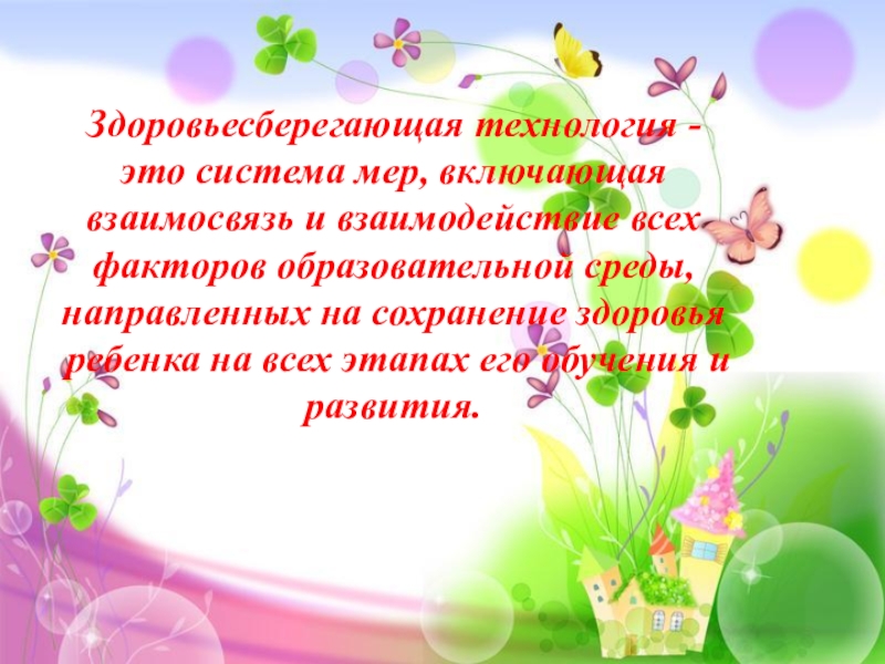Здоровьесберегающая технология - это система мер, включающая взаимосвязь и взаимодействие всех факторов образовательной среды, направленных на сохранение