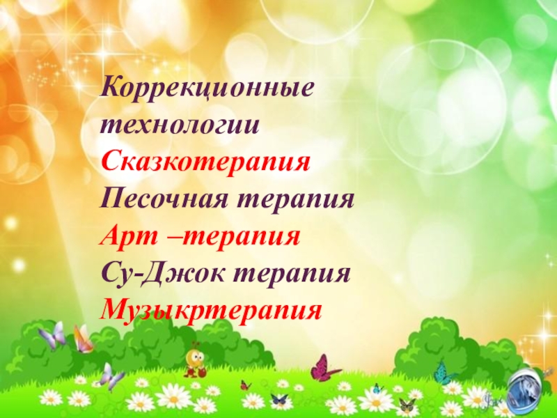 Коррекционные технологииСказкотерапияПесочная терапияАрт –терапияСу-Джок терапияМузыкртерапия