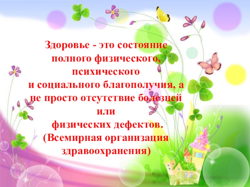 Здоровье - это состояние полного физического, психического и социального благополучия, а не просто отсутствие болезней или физических