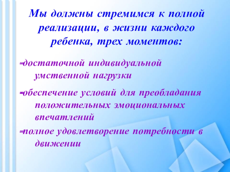 -обеспечение условий для преобладания положительных эмоциональных впечатлений