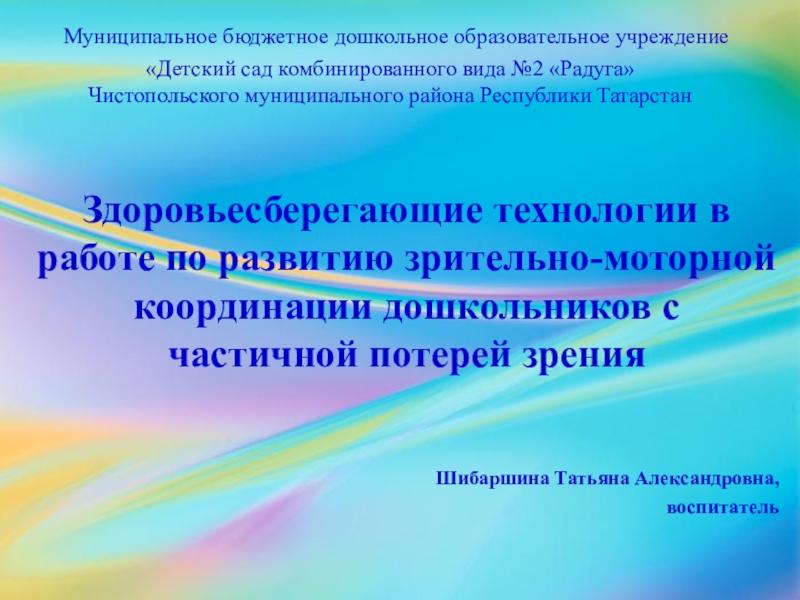 Здоровьесберегающие технологии в работе по развитию зрительно-моторной координации дошкольников с частичной потерей зрения