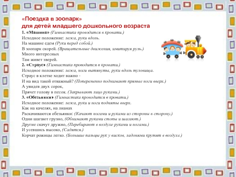 Цель: массаж живота, координация движений, дыхательная гимнастика.