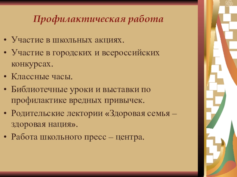 Собранный материал может быть оформлен в виде стенда, помещен в классный уголок здоровья.