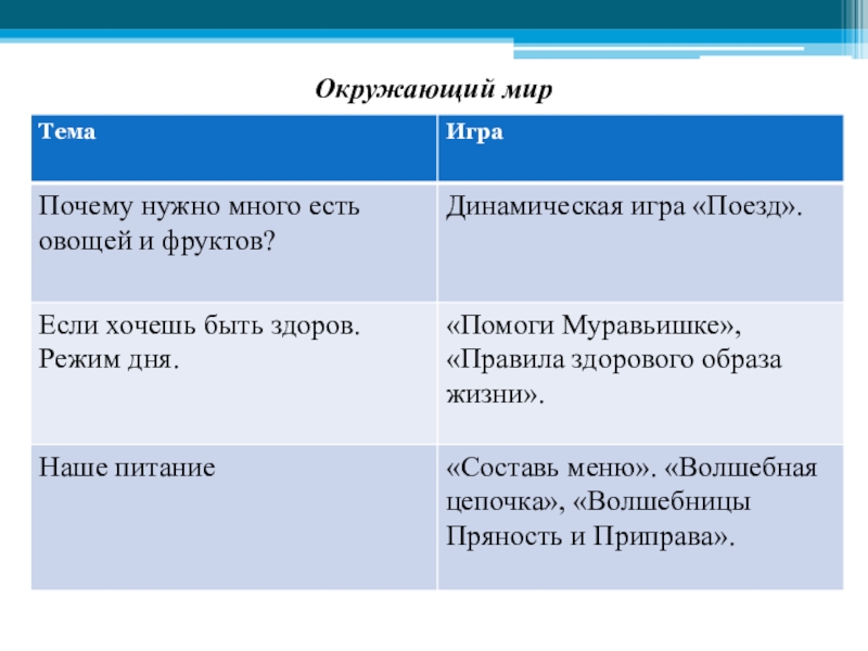 Игры на формирование культуры здорового питания.