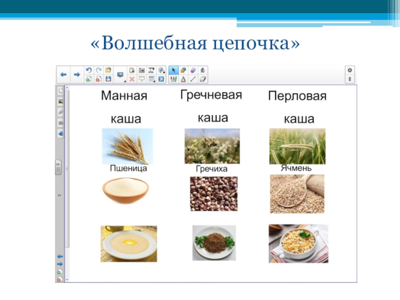 9. «Волшебная цепочка». На интерактивной доске даны изображения злаков и соответствующих