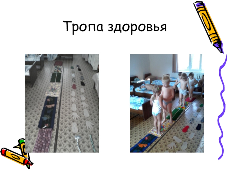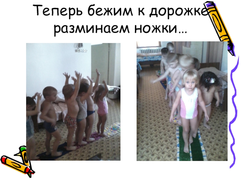 Слайд 13Теперь бежим к дорожке разминаем ножки…