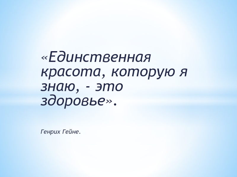 «Единственная красота, которую я знаю, - это здоровье».Генрих Гейне.