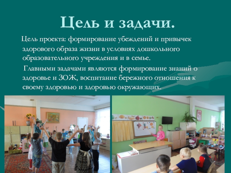 Цель и задачи.  Цель проекта: формирование убеждений и привычек здорового образа жизни в условиях дошкольного образовательного