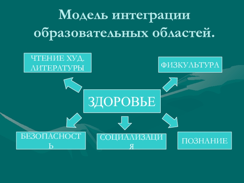 Модель интеграции образовательных областей.ЗДОРОВЬЕЧТЕНИЕ ХУД. ЛИТЕРАТУРЫБЕЗОПАСНОСТЬПОЗНАНИЕСОЦИАЛИЗАЦИЯФИЗКУЛЬТУРА