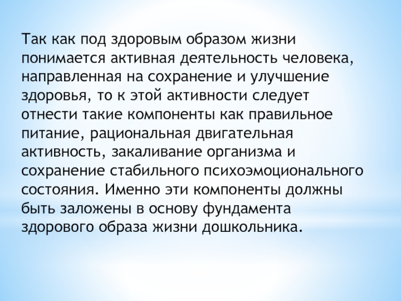 Слайд 4Так как под здоровым образом жизни понимается активная деятельность человека, направленная
