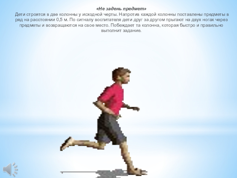 «Не задень предмет» Дети строятся в две колонны у исходной черты. Напротив каждой колонны поставлены предметы в ряд