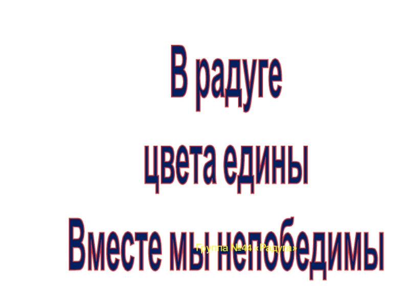В радуге цвета единыВместе мы непобедимыГруппа №44 «Радуга»